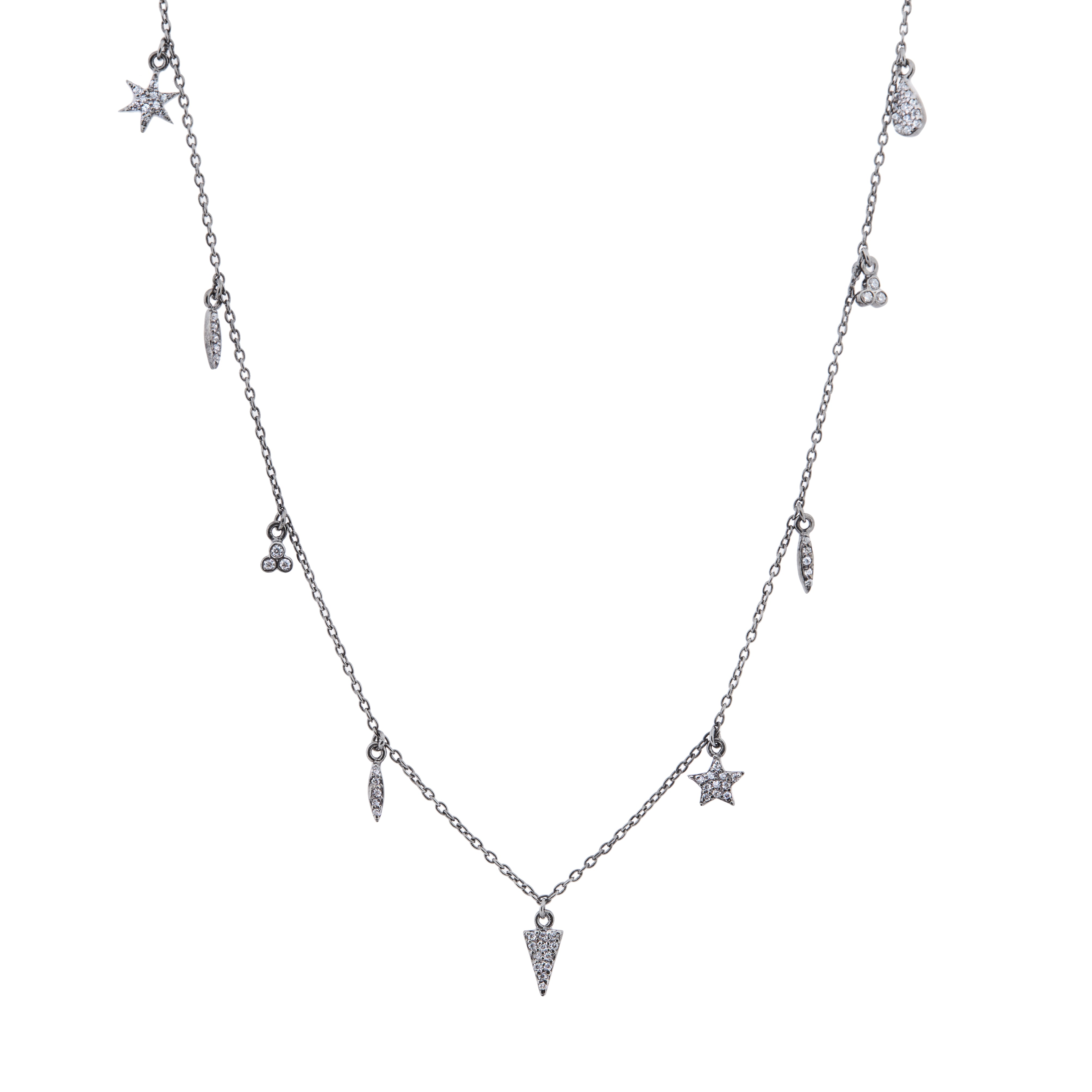 A classic charm necklace featuring all the favorite CbyC charms. The star, the drop shape and the spike collected as mini versions on a delicate, adjustable chain. Truly the effortless everyday elegance. Crafted with care and high-quality materials.