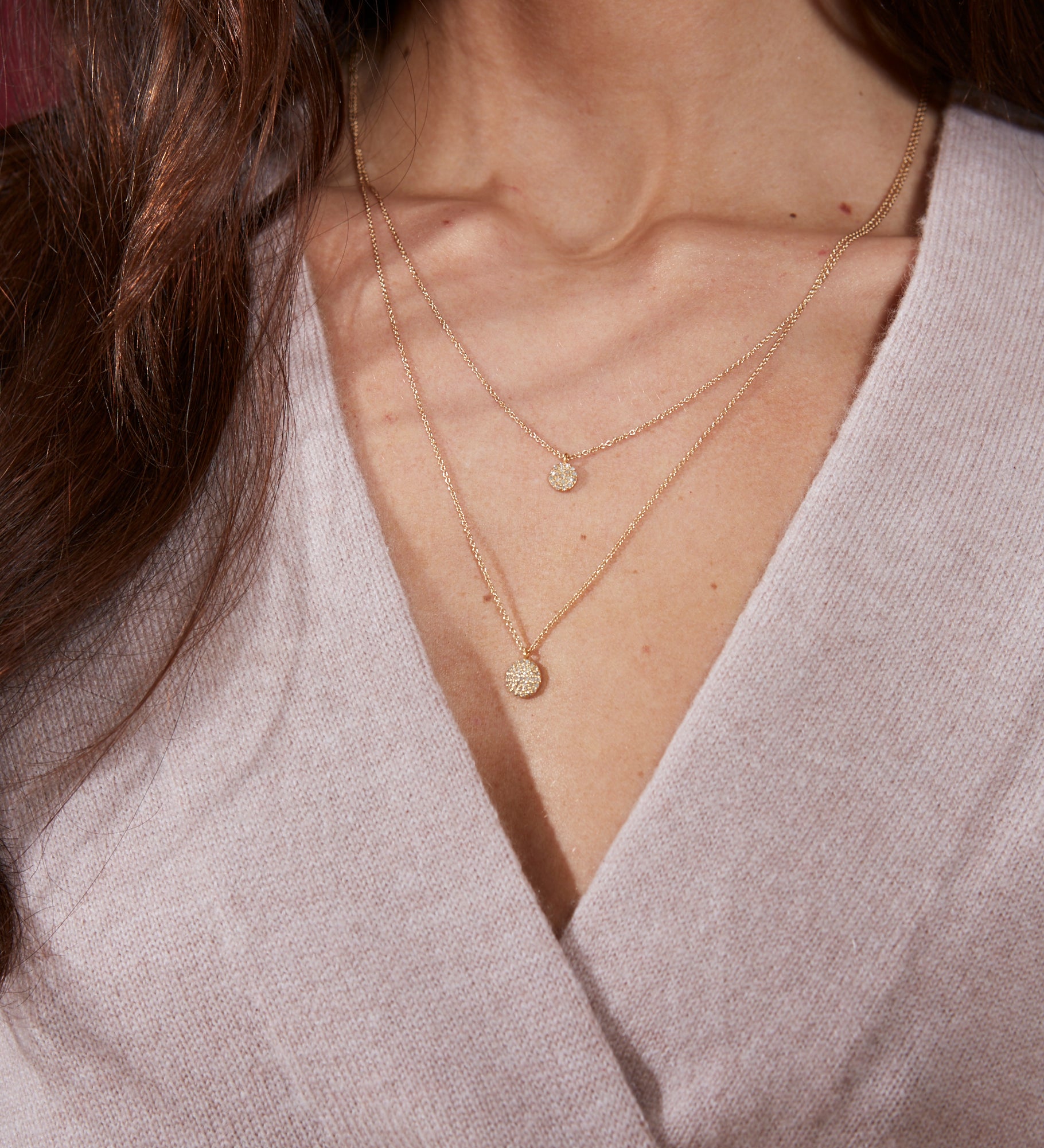 Small Diamond Disc Necklace, Gold