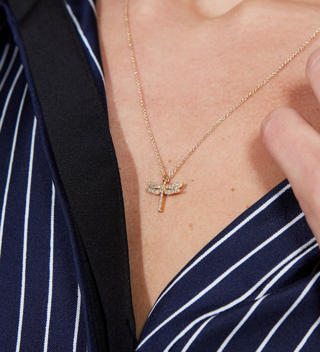 Diamond Dragonfly Necklace, Gold