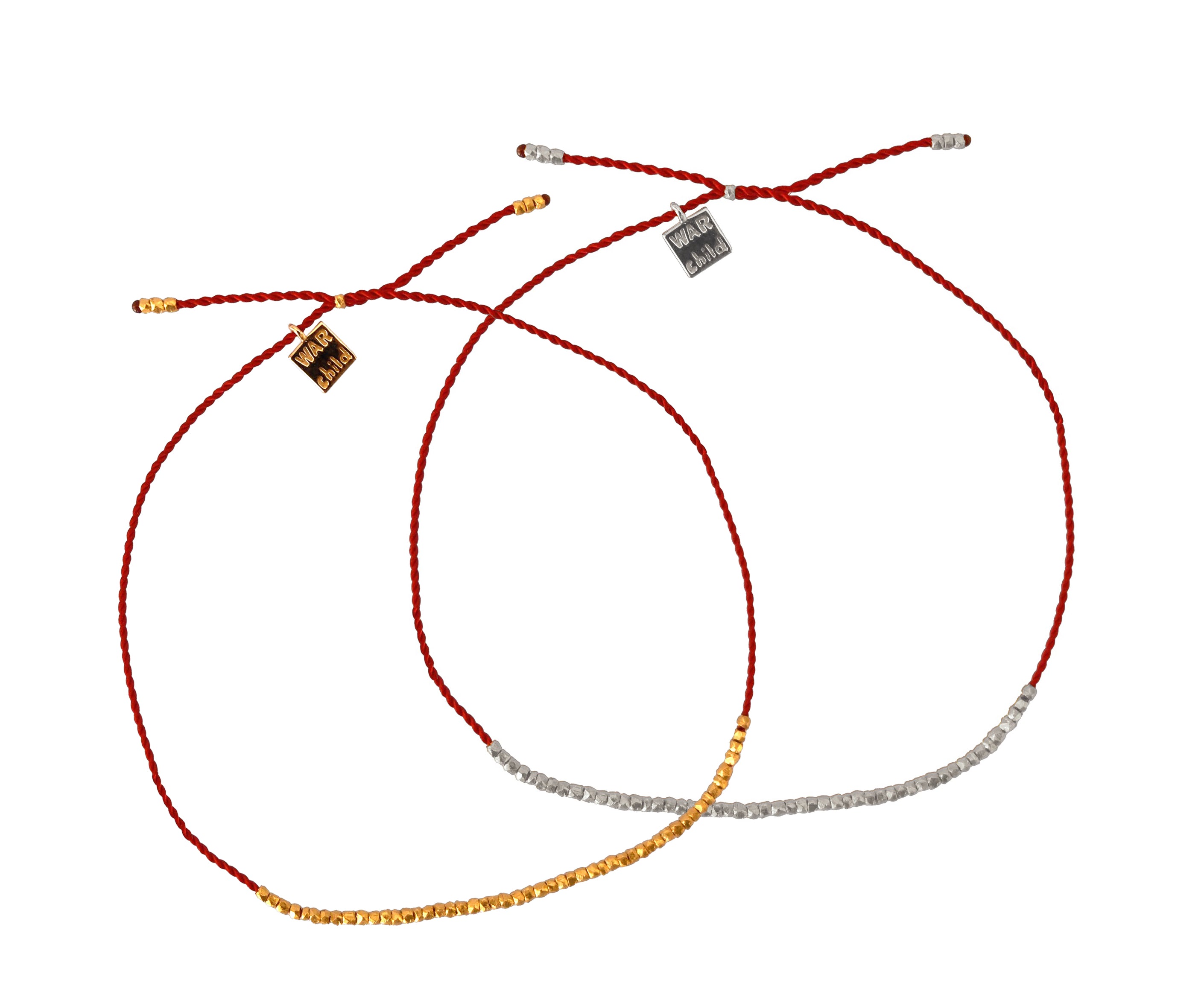 The War Child bracelet features a symbolic charm that represents our commitment to War Child. Each tiny handmade bead on the bracelet comes from a small village in Thailand, where two sisters founded their business in 1999. All their products are Fair Trade, eco-friendly, and cruelty-free, with fair wages and joy at the core of their work.