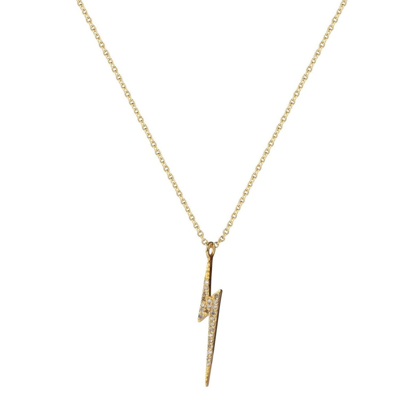 Striking yet subtle, the shape of a lightning brings the perfect balance between both. Set with stones that add a shimmering glimpse when worn around the neck. Made by hand in our showroom in Stockholm.