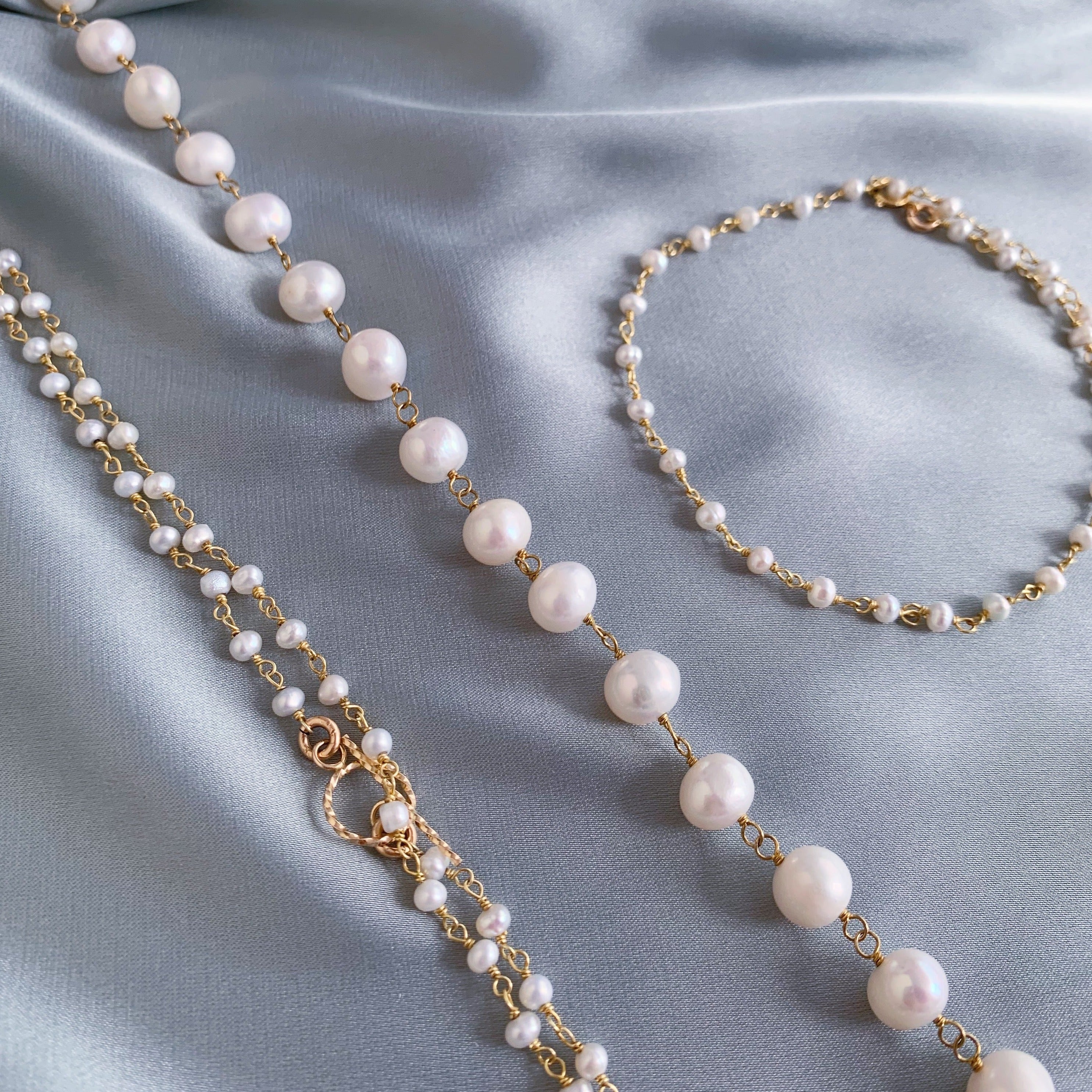 A necklace that captures the feeling of something simple - yet unexpected. Beautiful freshwater pearls sit close to the neck. Subtle, with attitude.