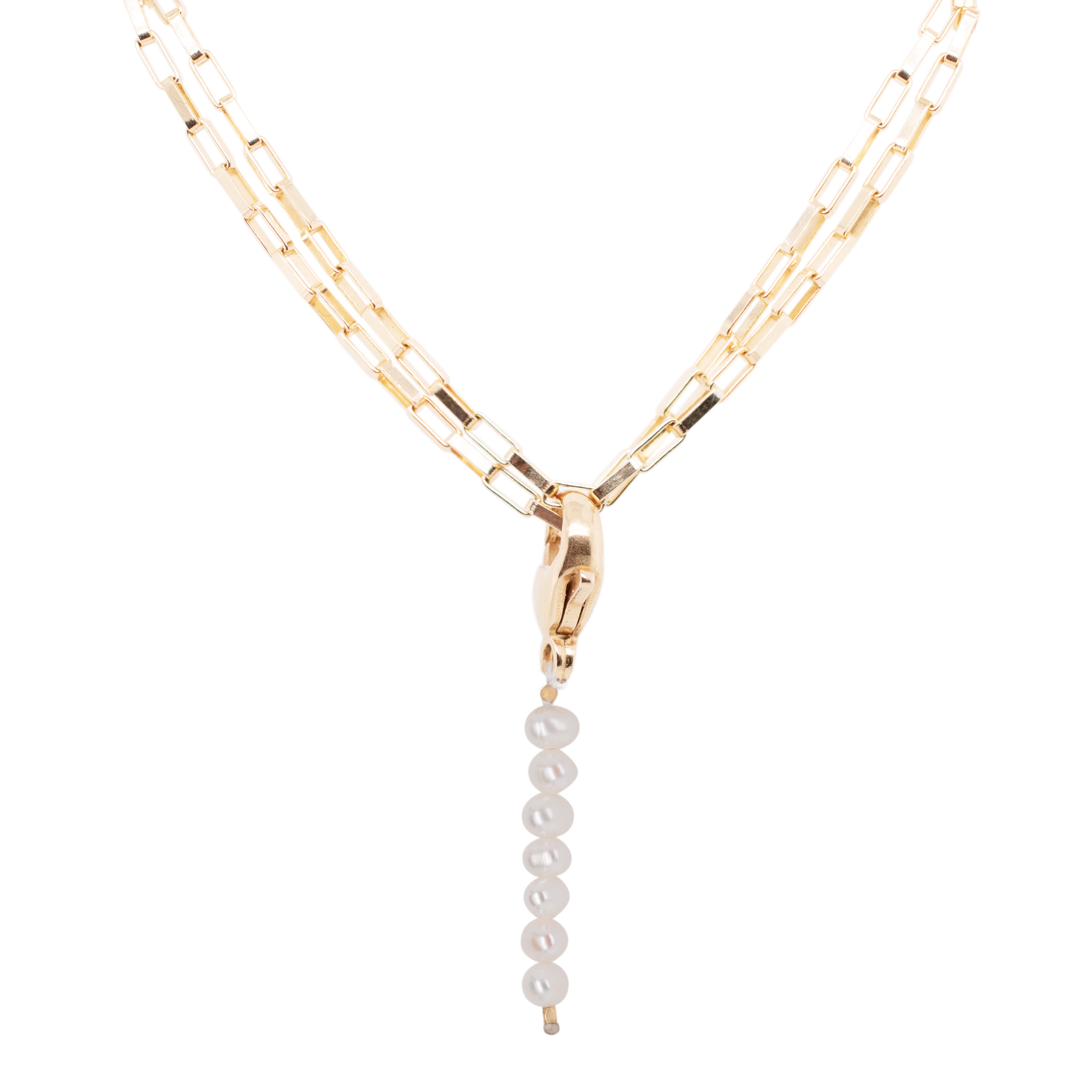 The Pearl Multi Necklace is the perfect multi-use necklace. Wear it as it is, wrapped around your neck for a layered look or you could connect two parts of the chain around the neck and create a layered look with one necklace. Only your imagination sets the limits.