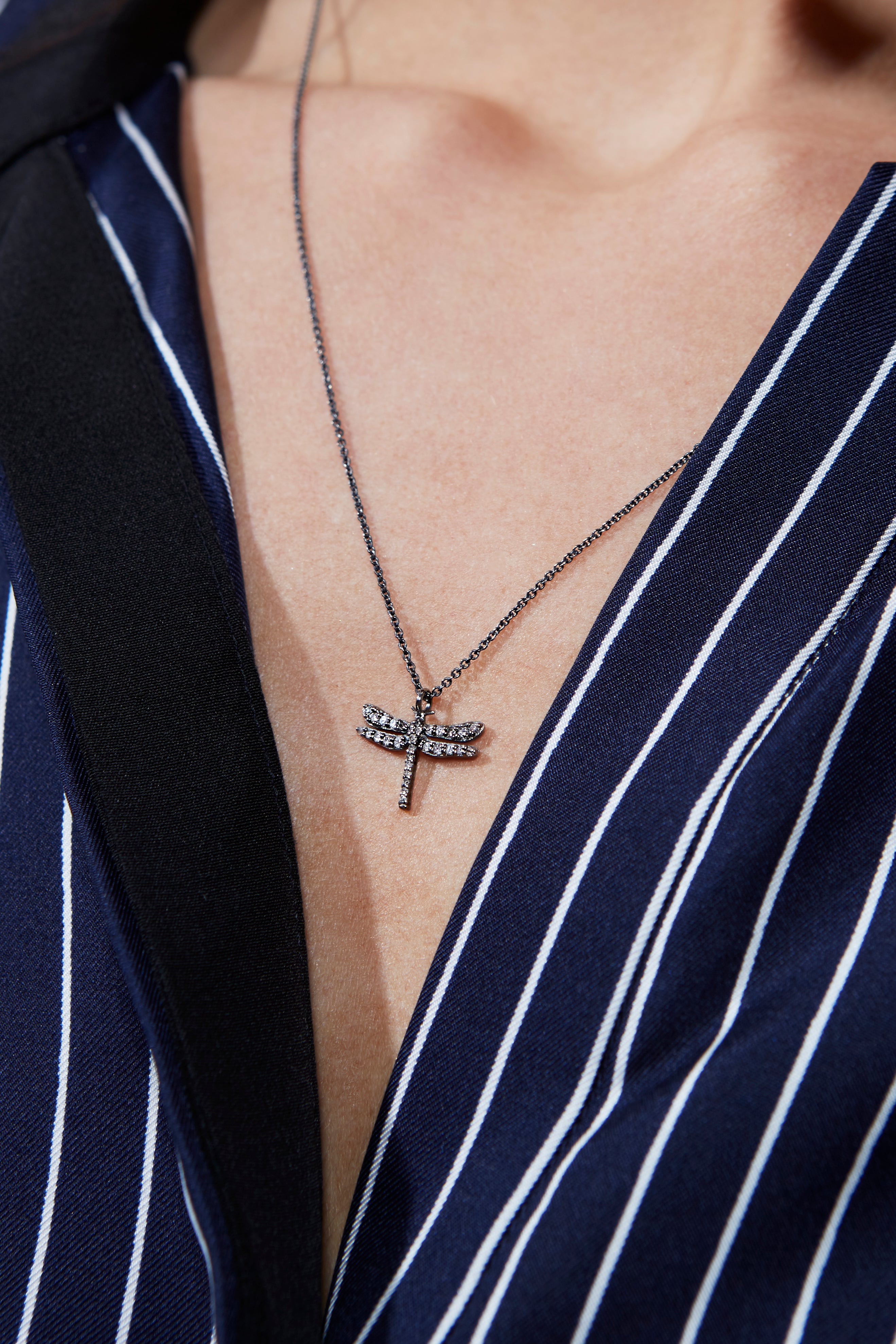 A precious metal from the platinum family, used as a dark coating on a core metal. Black rhodium gives the jewelry a deep grey to black tone with a subtle shine, while protecting the surface from scratches and tarnish. The result is a stronger and more durable piece.