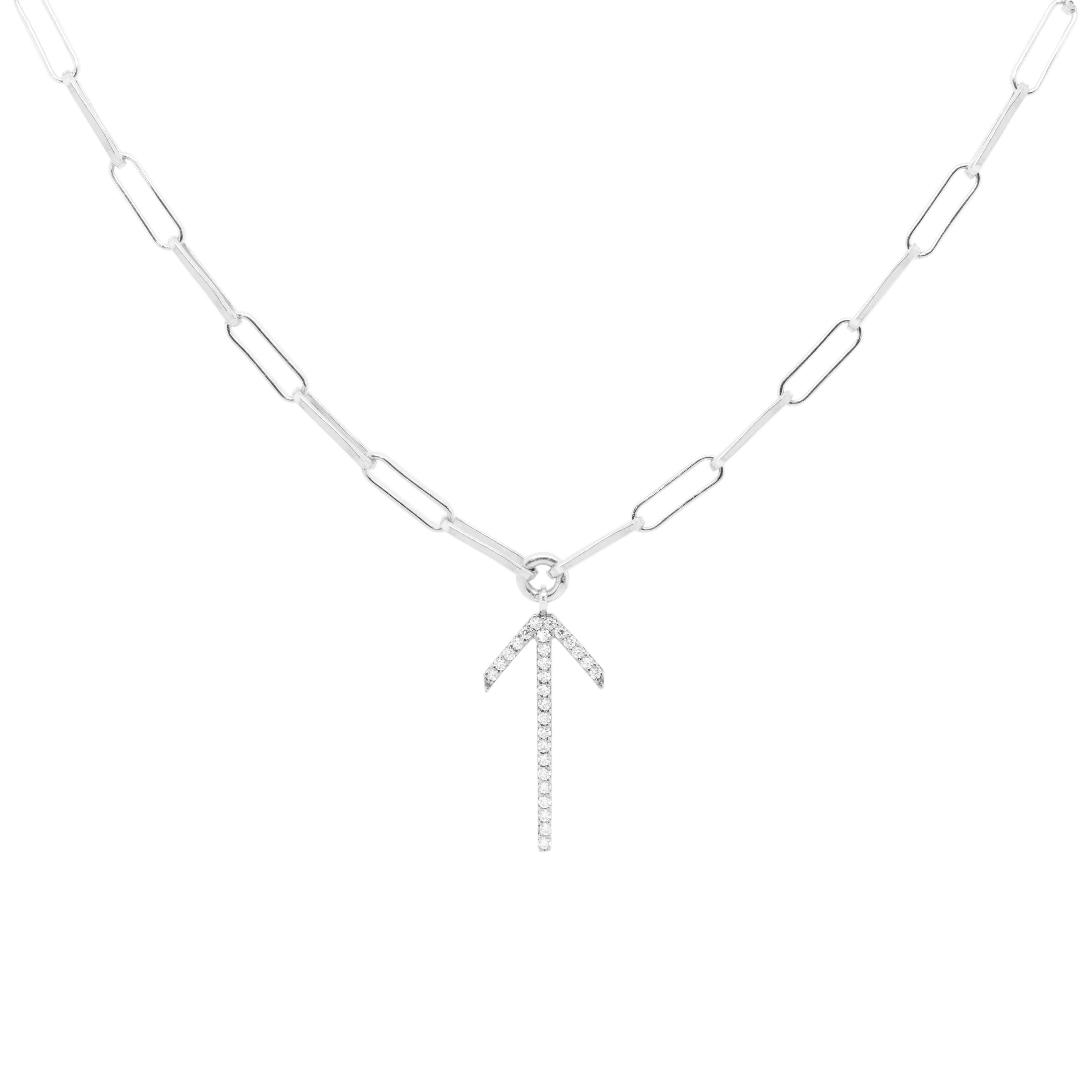 Behöver du en liten påminnelse om vart du är på väg? Uppåt. En klassisk symbol designad för att lägga sig diskret runt halsen. Tillverkad för hand i vårt showroom i Stockholm.