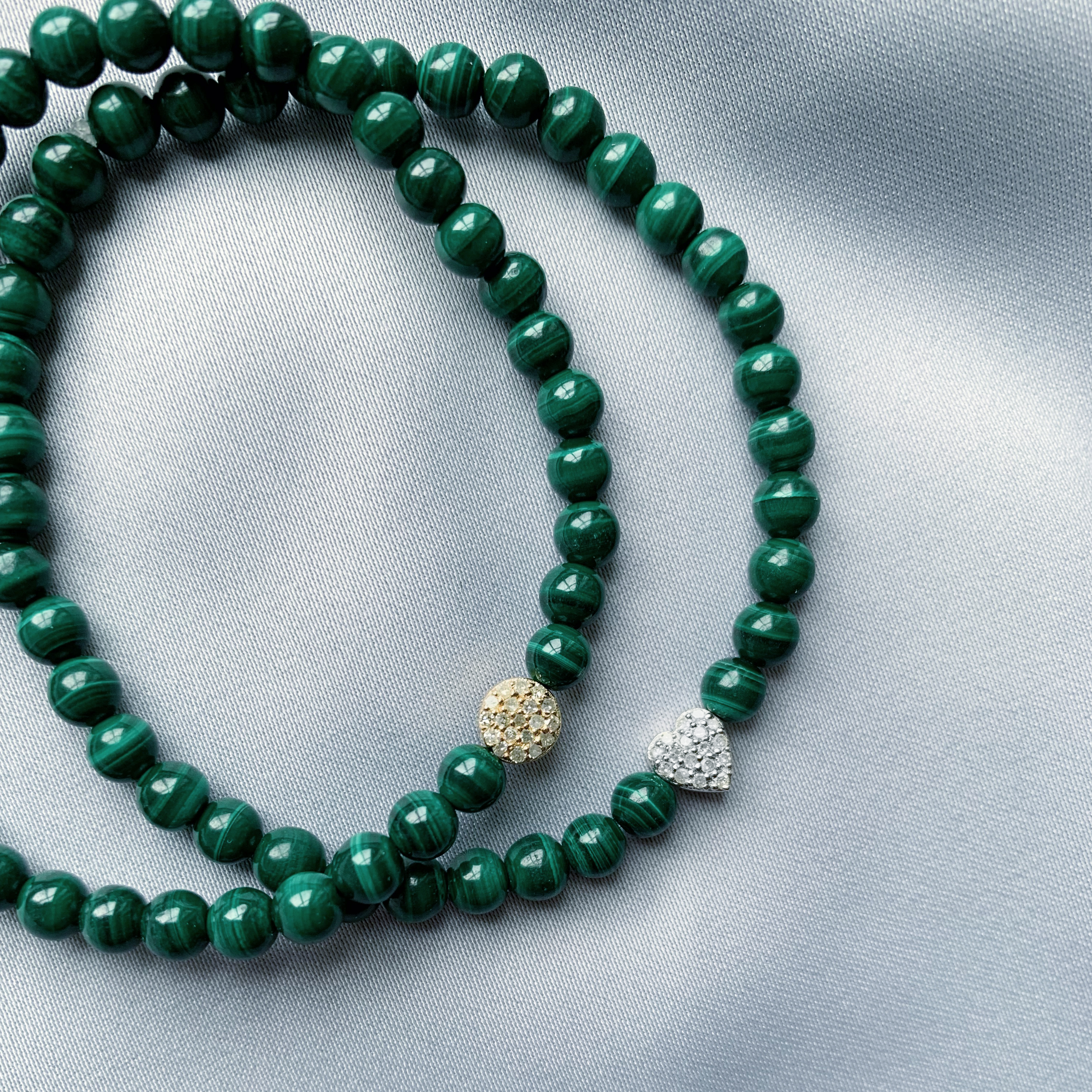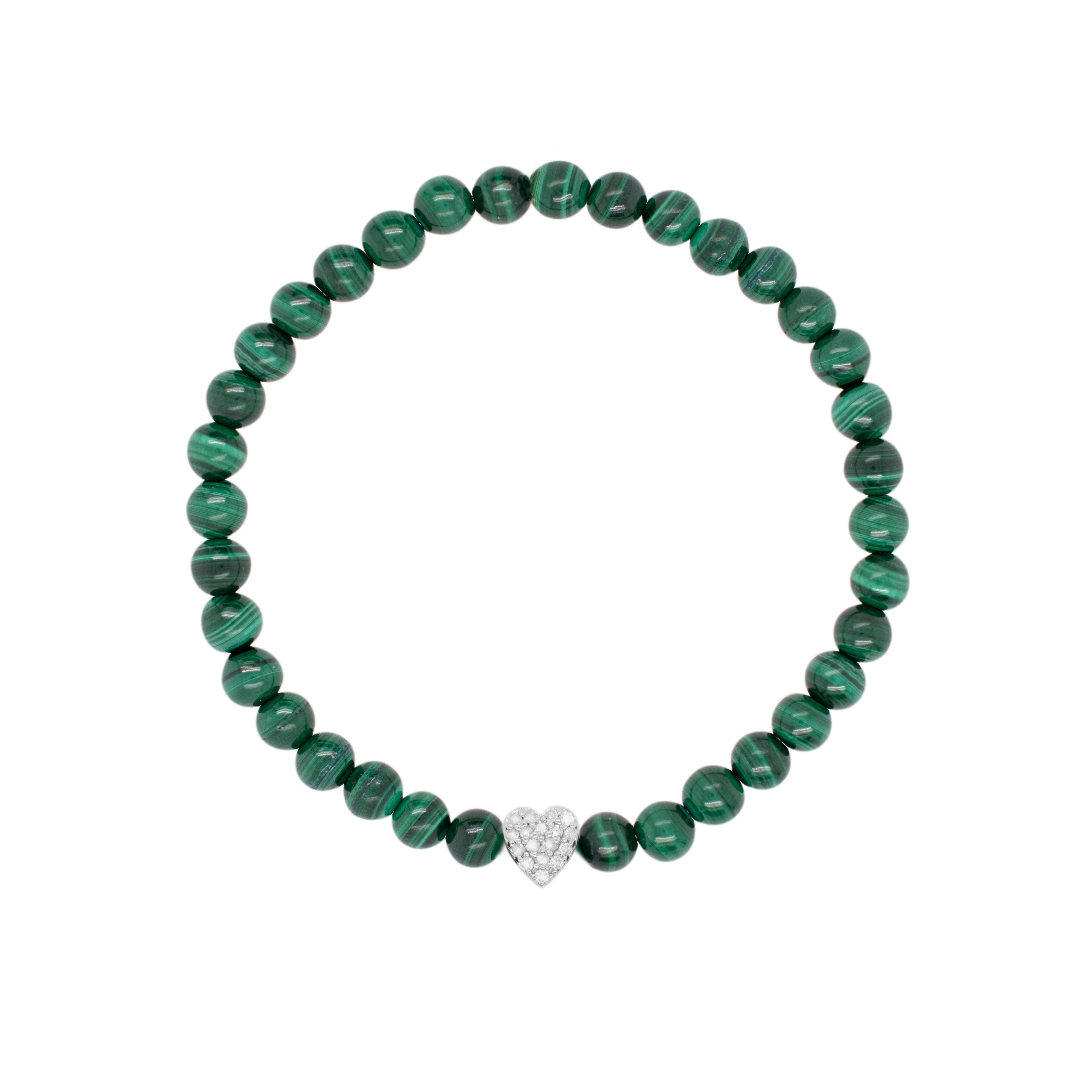Malachite Bracelet with Silver Diamond Heart